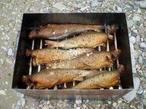 - Можно использовать все фруктовые деревья. По мере необходимости в коптильню можно добавлять свежую траву, чтобы создать густую задымленность. А спустя 3 часа рыбу убрать и проветрить. Не использовать хвойные ветки.