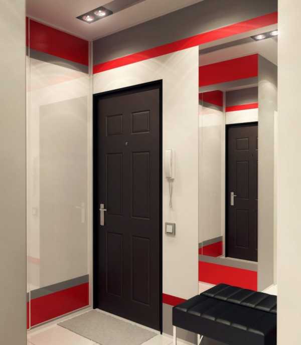 Можно сделать зеркальной одну их стен коридора. В этом случае проблема узости коридорного пространства будет решена в полном объеме и даже более того. Чтобы помещение не показалось пустым, возле такой стены ставят подставку под зонты. Можно обставлять коридор встроенной мебелью. Для помещений с нетрадиционной планировкой и множеством дверей это наиболее приемлемый вариант.