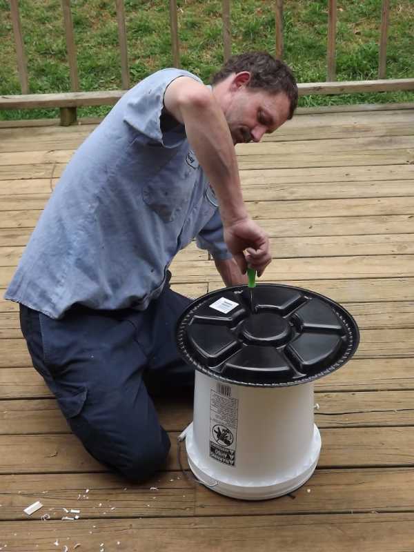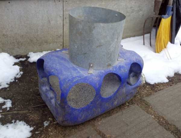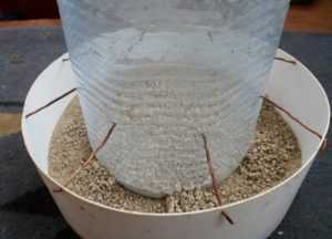 ΠΠΎΠΆΠ½ΠΎ ΡΡΡΡΠΎΠΈΡΡ Π½Π΅ΡΠΊΠΎΠ»ΡΠΊΠΎ ΡΠ°ΠΊΠΈΡ ΠΊΠΎΠ½ΡΡΡΡΠΊΡΠΈΠΉ ΠΈΠ»ΠΈ ΠΆΠ΅ Π΄ΠΎΡΠ°Π±ΠΎΡΠ°ΡΡ ΠΊΠΎΡΠΌΡΡΠΊΡ Π΄Π»Ρ Π±ΠΎΠ»ΡΡΠΎΠ³ΠΎ ΡΠΈΡΠ»Π° ΠΏΡΠΈΡ. Π’ΠΎΠ³Π΄Π° ΡΡΡΠ±Ρ Π½ΡΠΆΠ½ΠΎ ΡΠ°Π·ΡΠ΅Π·Π°ΡΡ Π½Π° 2 ΡΠ°ΡΡΠΈ, ΠΎΠ΄Π½Π° ΠΈΠ· Π½ΠΈΡ 30 ΡΠΌ, ΠΈΡ ΡΠΎΠ΅Π΄ΠΈΠ½ΠΈΡΡ ΠΏΠ»Π°ΡΡΠΈΠΊΠΎΠ²ΡΠΌ ΠΊΠΎΠ»Π΅Π½ΠΎΠΌ. Π ΠΊΠΎΡΠΎΡΠΊΠΎΠΌ ΠΊΡΡΠΊΠ΅ ΡΡΠ΅Π·Π΅ΡΠΎΠ²ΠΎΡΠ½ΠΎΠΉ Π½Π°ΡΠ°Π΄ΠΊΠΎΠΉ Π²ΡΠ»ΠΈΠ²Π°ΡΡΡΡ Π΄Π²Π° ΠΎΡΠ²Π΅ΡΡΡΠΈΡ ΠΏΠΎ ΠΎΠ±Π΅ ΡΡΠΎΡΠΎΠ½Ρ (Π΄ΠΈΠ°ΠΌΠ΅ΡΡ ΠΎΠΊΠΎΠ»ΠΎ 4 ΡΠΌ), ΡΠ΅ΡΠ΅Π· ΡΡΠΈ ΠΌΠ΅ΡΡΠ° ΠΏΡΠΈΡΠ° Π±ΡΠ΄Π΅Ρ ΠΊΠ»Π΅Π²Π°ΡΡ ΠΏΠΈΡΡ, ΠΎΡΡΠ°Π»ΡΠ½ΡΠ΅ ΠΊΡΠ°Ρ Π·Π°ΠΊΡΡΠ²Π°ΡΡΡΡ Π·Π°Π³Π»ΡΡΠΊΠΎΠΉ.
