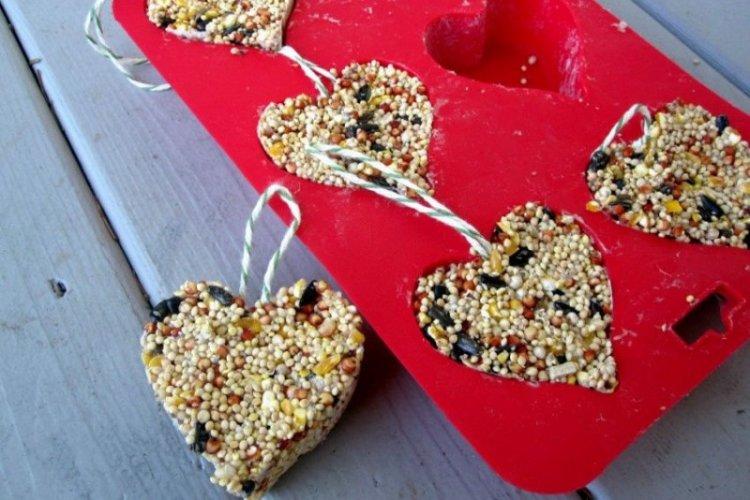 кормушек для птиц с арахисовым маслом и птичьим кормом