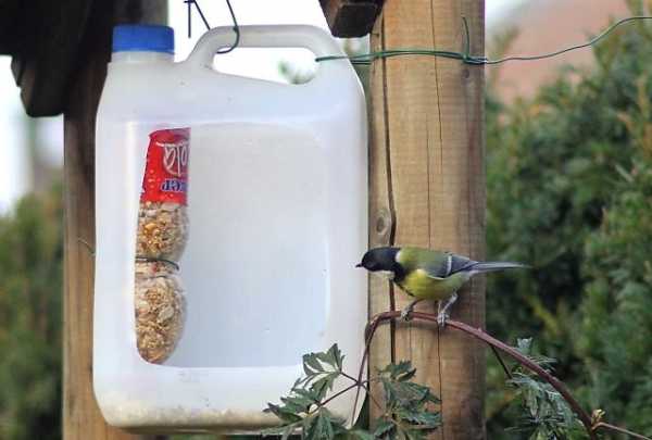 Вы можете заняться кормушкой прямо сейчас, подойдет любая пластиковая бутылка, включая пластиковые пищевые канистры, пакеты от сока и молока. Вся пластиковая тара от пищевых продуктов, которую вы найдете у себя дома, будет отлично работать, если проявить немного фантазии. Любой проект займет не более часа, зато прослужит не один год.