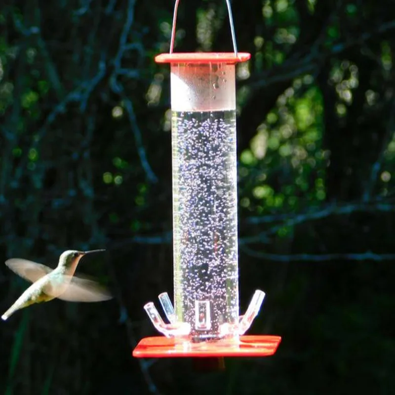 Кормушки из стеклянной трубки имеют лоток в нижней части вертикальной трубки, где птицы садятся. Фидеры из стеклянных трубок не имеют портов.