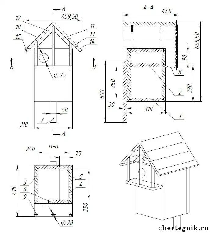 Кормушки для птиц чертеж: Кормушка для птиц из фанеры делаем своими руками из дерева чертежи