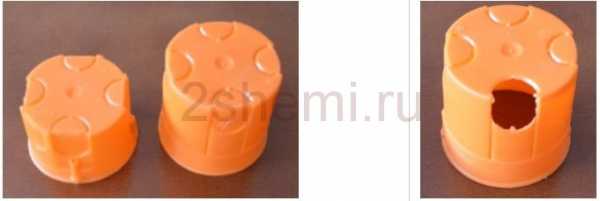 На нижней части пластиковой банки могут быть четыре элемента, подготовленные — в зависимости от потребностей — для отлома (например, с плоскогубцами) и прохождения проводов. Аккуратнее с этим, потому что пластик может треснуть.