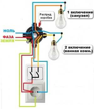 Схема подключения двухклавишного выключателя без распределительной коробки