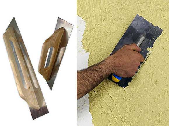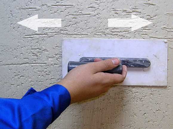 Фактурную поверхность создают при помощи пластиковой кельмы или терки. Ее нужно приложить к оштукатуренной стене всей плоскостью и слегка прижать. В зависимости от движений, которые будут производиться инструментом, зависит рисунок на готовом покрытии: