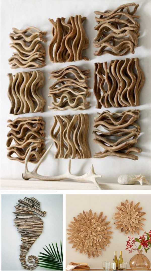 Если вы насобираете множество подходящих палочек и досок, то легко обеспечите себя оригинальными вешалками для одежды или драгоценностей, полками под безделушки и фотографии, рамами для зеркал, держателями для заметок и фото, различными корзинками, подносами и подставками под горячее. И даже можно сделать часы или лестничные перила.