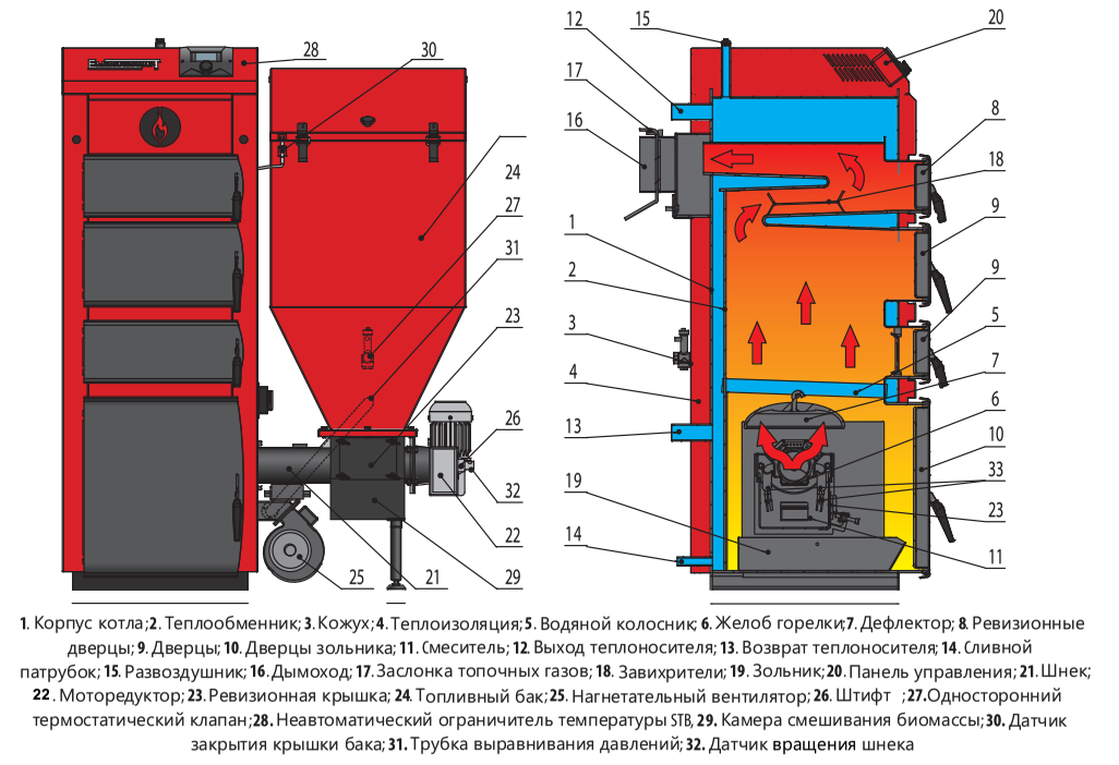 Для автоматических пеллетных котлов MultiBio 199 вы можете получить субсидию по программам OPIK. Мы бесплатно поможем вам с грантами для нашего котла.MultiBio Конструкция автоматического котла на древесных гранулах 199