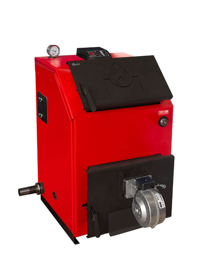 Такие отопительные приборы выполняются только напольной конструкции, требуют отдельного помещения и очень часто сверху комплектуются чугунной плитой для приготовления пищи во время его работы. Особенность передачи энергии от твердого топлива к теплоносителю требует серьезного утепления всего корпуса котла с помощью базальтовой ваты, поэтому они очень массивные и занимают много места.