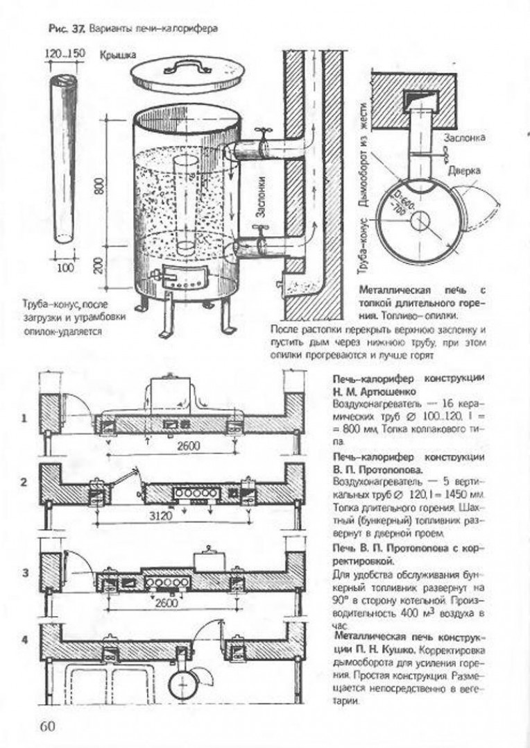 модификации отопителей, чертежи пиролизных установок длительного горения