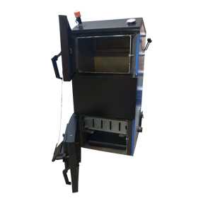 - Принцип работы – топливо сжигается посредством газогенерации. В конструкции предусмотрены две топочные камеры. В основной топке, горят дрова или брикеты. В камере вторичного горения, дожигаются отходящие газы.
