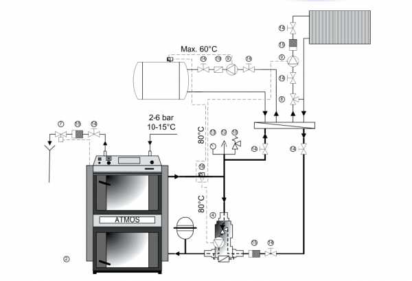 Схема подключения пеллетного котла в систему отопления дома идентична схеме подключения любого теплогенератора, будь то газовый котел или котел на дизельном топливе.
