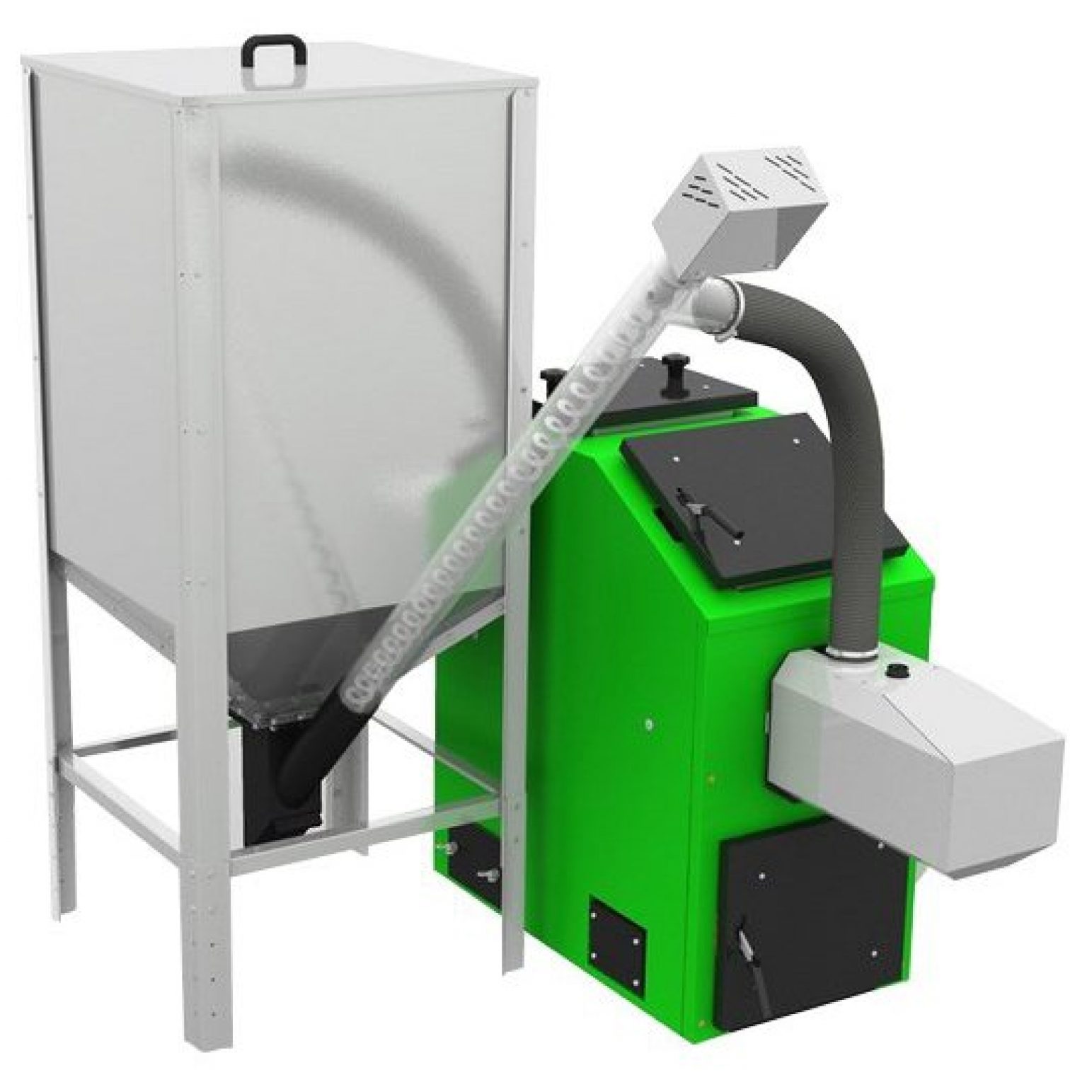 - Бункеры для пеллет бывают разных размеров — небольшой бункер вмещает пеллеты на неделю; большой бункер, в котором будет достаточно пеллет на месяц или дольше. Бункер для сыпучих материалов полностью герметичен, поэтому из него практически не выделяется заметная пыль.