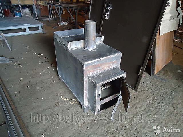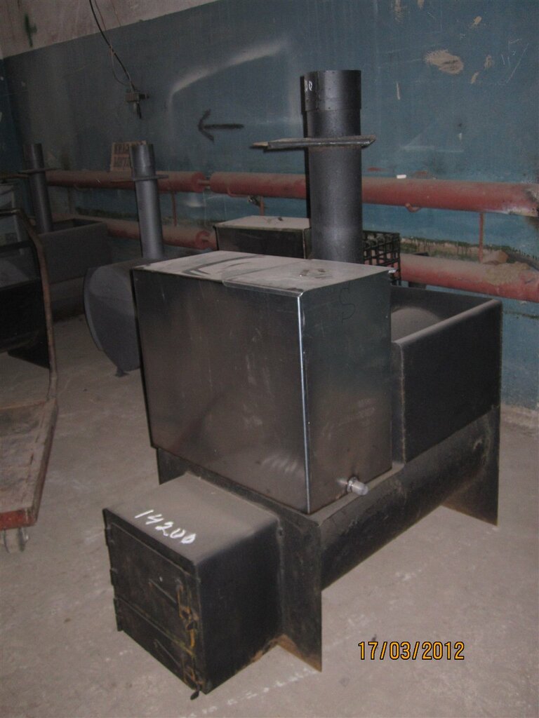 Подобная печь из металла для бани наиболее сложной в производстве.Это вызвано тем, что подготовленной заготовки не будет. Принципиально подобное устройство ничем не отличается от вышеописанного. Оно тоже содержит в себе 4 отсека: зольник, топку, каменку и бак.