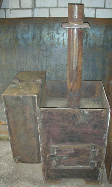 Производство такой печи займет больше времени. Особенно придется повозиться с баком для воды, который должен быть практически герметичен. Зато в результате получится изделие ничем не отличное от произведенного на заводе.