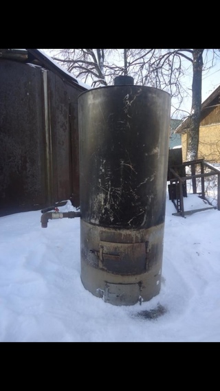 Изготовить подобную конструкцию не сложней, чем котел из бочки, установленный вертикально. Недостатком этого изделия является то, что оно занимает много места.