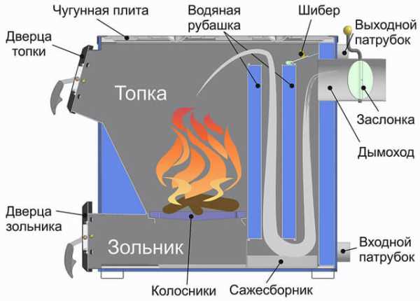 Водогрейные отопительные дровяные котлы для дачи работают следующим образом: