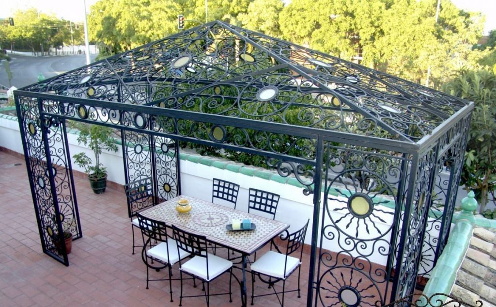 Простейшая кованая конструкция может сделать ваш отдых незабываемым. Здесь вы можете поставить оригинальная мебель, дополненная причудливыми коваными деталями, которые придают зданию особый шарм.