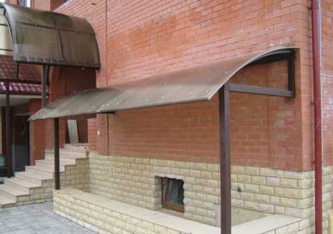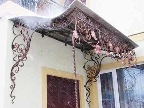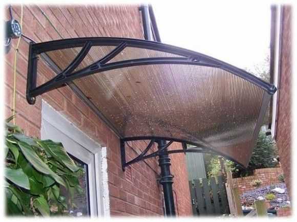 - немаловажно задуматься о креплении козырька или навеса, а также прочности материалов. Ведь изделия должны выдерживать не только собственный вес, но и осадки в виде снега зимой. Да и лед может нависать, создавая дополнительную нагрузку.