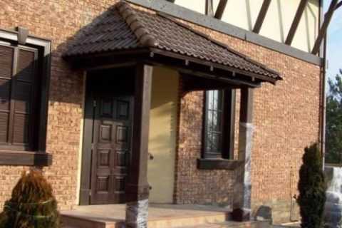 - начнем с внешнего вида. Каким бы красивым, оригинальным или искусным ни было изделие, важно чтобы он сочетался с крыльцом и экстерьером дома в целом. Совсем необязательно, чтобы кровельный материал крыши и козырька с навесом был идентичным. Однако они должны гармонировать друг с другом. Одинаковым может быть стиль и цвет конструкции, а также материал, из которого она сделана;