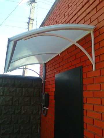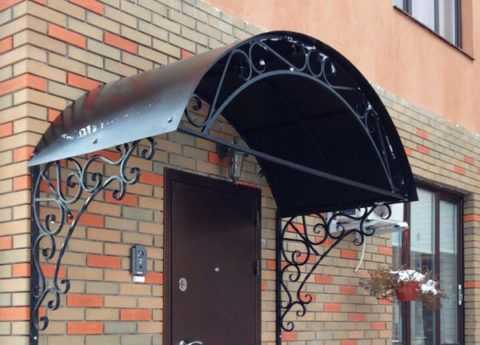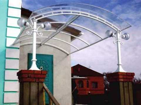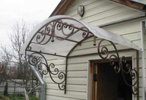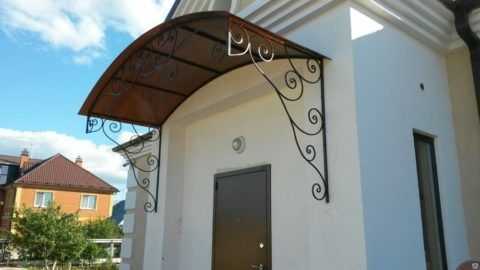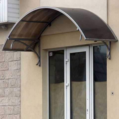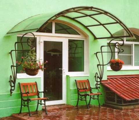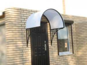 - за счет своей гибкости, козырек над крыльцом можно делать в любом виде: прямым, полукруглым или шатровым;