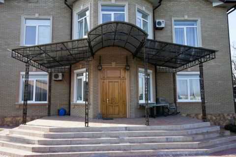 Именно такой козырек над крыльцом вы могли видеть чаще всего. Дело в том, что изделия из поликарбоната являются самыми популярными. И дело не только в том, что козырек для крылец только красивый. Он обладает массой преимуществ: