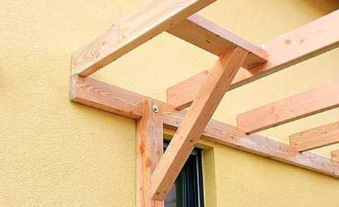 Чаще всего из дерева выполняется только каркас конструкции. Это объясняется податливостью древесины к обработке и монтажу, а также ее доступной ценой. Однако такие каркасы менее надежны и долговечны, чем, к примеру, металлические. Поэтому, если вы все же решили изготовить козырек над крыльцом из дерева, важно обратить внимание на две рекомендации: