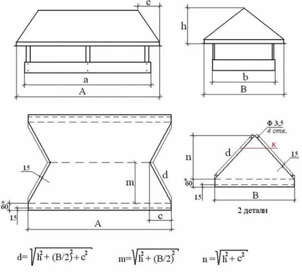 Защитный колпак на трубу дымохода своими руками: чертежи, изготовление, фото