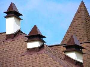 Благодаря щипцовым крышам дымников, дымоходы надежно защищены от атмосферных осадков, а также способствуют прекрасному проветриванию дымоходов.
