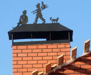 Колпак на дымовую трубу еще называют флюгарка или дымник. Он необходим для усиление тяги, чтобы в трубу не попадала грязь. Флюгарка это новшество, но и это дань старине. Сейчас все коттеджи оборудованы колпаками.