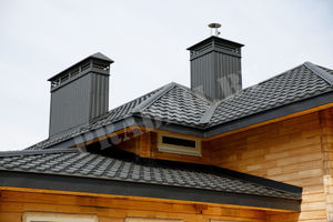 ![]() Улучшает внешний вид здания | Красивый колпак оригинальной конструкции действительно с положительной стороны влияет на внешний вид. Есть эксклюзивные проекты, позволяющие подчеркивать престижность строения и солидное финансовое положение их владельцев. |