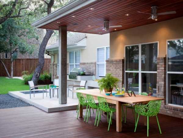Под деревянным навесом можно расположить удобные кресла, для отдыха в летнее время