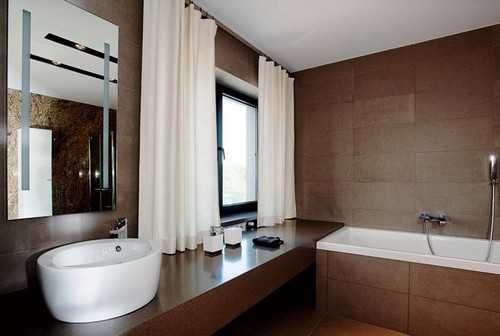 Π‘ΡΠ΅Π½Ρ ΡΠ΅ΡΠ½ΠΎΠ³ΠΎ ΡΠ²Π΅ΡΠ°, ΠΏΡΠ΅Π΄ΡΡΠ°Π²Π»ΡΡΡ ΡΠΎΠ±ΠΎΠΉ Π΄ΠΎΡΡΠ°ΡΠΎΡΠ½ΠΎ ΡΠΌΠ΅Π»ΡΠΉ Π²Π°ΡΠΈΠ°Π½Ρ. Π’Π°ΠΊΡΡ ΠΎΡΠ΄Π΅Π»ΠΊΡ ΡΠ°ΡΠ΅ Π²ΡΠ΅Π³ΠΎ ΠΊΠΎΠΌΠ±ΠΈΠ½ΠΈΡΡΡΡ Ρ Π±ΠΎΡΠ΄ΠΎΠ²ΠΎΠΉ, Π²ΠΈΡΠ½Π΅Π²ΠΎΠΉ ΠΎΠ±Π»ΠΈΡΠΎΠ²ΠΊΠΎΠΉ, ΠΎΠ³Π½Π΅Π½Π½ΠΎΠΉ ΠΌΠ΅Π±Π΅Π»ΡΡ, ΡΠ°Π½ΡΠ΅Ρ Π½ΠΈΠΊΠΎΠΉ ΠΈ Π΄ΠΎΠΏΠΎΠ»Π½ΡΡΡ ΠΊΠ°ΡΠ΅ΡΡΠ²Π΅Π½Π½ΡΠΌ ΠΎΡΠ²Π΅ΡΠ΅Π½ΠΈΠ΅ΠΌ. Π Π΄Π°Π½Π½ΠΎΠΌ ΡΠ»ΡΡΠ°Π΅ ΡΠ°ΠΊΠΆΠ΅ Π²ΠΎΠ·ΠΌΠΎΠΆΠ½ΠΎ ΠΏΡΠΈΠΌΠ΅Π½Π΅Π½ΠΈΠ΅ ΡΡΠΊΠΈΡ Π°ΠΊΡΠ΅ΡΡΡΠ°ΡΠΎΠ², Π½Π°ΠΏΡΠΈΠΌΠ΅Ρ, ΡΡΠΎΡΠΊΠΈ Π΄Π»Ρ Π²Π°Π½Π½Ρ. Π ΡΠΎΠ·Π΄Π°Π½ΠΈΠΈ ΠΊΡΠ°ΡΠ½ΠΎ-ΡΠ΅ΡΠ½ΠΎΠ³ΠΎ Π΄ΠΈΠ·Π°ΠΉΠ½Π° Π²Π°Π½Π½ΠΎΠΉ, ΠΏΡΠ°ΠΊΡΠΈΡΠ΅ΡΠΊΠΈ Π½Π΅ ΠΏΠΎΠ»ΡΡΠ°Π΅ΡΡΡ ΠΈΠ·Π±Π΅ΠΆΠ°ΡΡ Π±Π΅Π»ΡΡ ΡΠΎΠ½ΠΎΠ², ΠΎΠ½ΠΈ ΠΈΡΠΏΠΎΠ»ΡΠ·ΡΡΡΡΡ Π² ΠΎΡΠΎΡΠΌΠ»Π΅Π½ΠΈΠΈ Π΄ΡΡΠ΅Π²ΠΎΠΉ ΠΊΠ°Π±ΠΈΠ½Ρ, ΡΠ½ΠΈΡΠ°Π·Π°, Π±ΠΈΠ΄Π΅ ΠΈΠ»ΠΈ ΡΠ°ΠΊΠΎΠ²ΠΈΠ½Ρ.