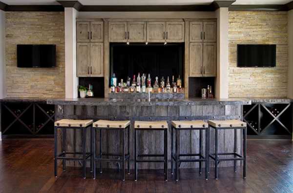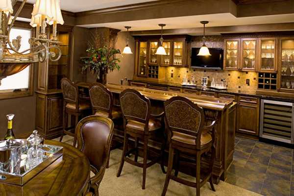 Обычно стойку дополняют высокими табуретами или полукреслами, которые могут иметь небольшие подлокотники. В классическом традиционном варианте из дерева барная стойка выглядит респектабельно. Такое дополнение интерьера будет подчеркивать аутентичность стиля.