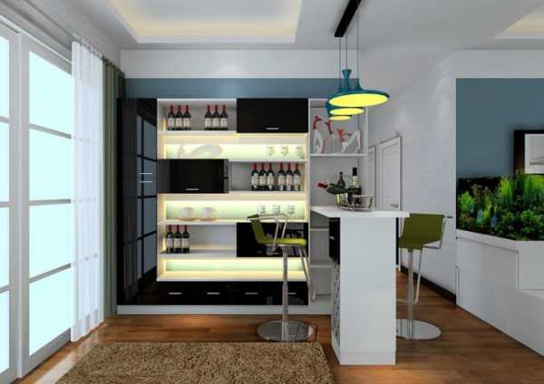 - Помещение обладает достаточной площадью для оборудования мини-баром. Подобная барная стойка может стать предметом роскоши, если оборудовать ее отдельным холодильником и шкафчиком для хранения напитков;