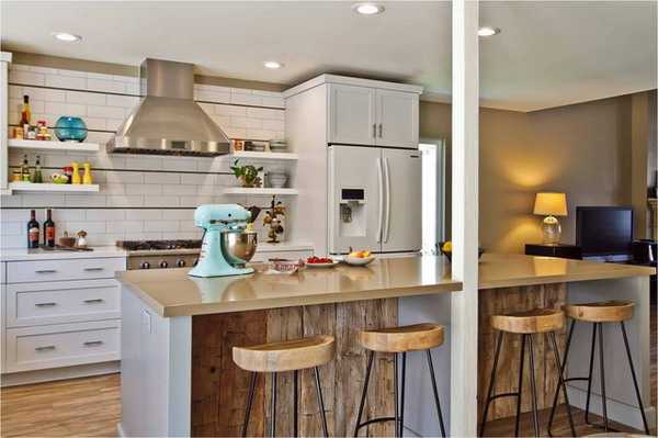 К сведению! Так как барная стойка снабжается высокими табуретами, то полностью отказаться от наличия обеденного стола может быть невозможно, если в семье есть маленькие дети и пожилые люди.
