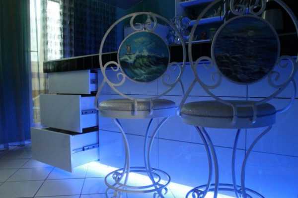 Устанавливая светильники в зоне мини-бара нужно полностью изолировать все провода в целях безопасности. Можно комбинировать несколько вариантов подсветки установив специальные переключатели.