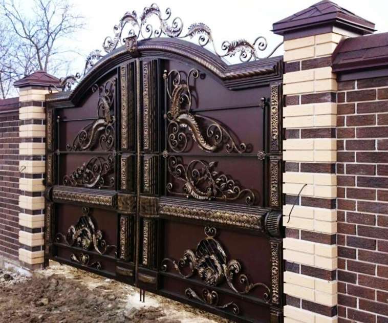 Металлические ворота с элементами ковки