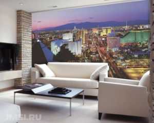 В гостиную отлично впишутся обои 3д с изображением Парижа, Нью-Йорка, Лондона и других городов, небольших улочек и старинных двориков, симпатично будет смотреться и терраса с видом на море.