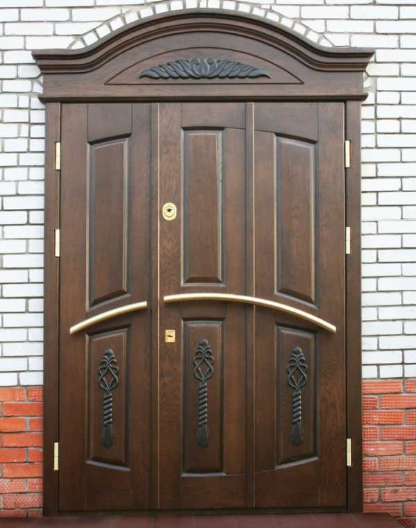 По внешнему виду двери сразу будет понятно, из какого материала она сделана – качественного или нет. Конечно же, самая изысканная и добротная дверь – из массива дерева (дуб, сосна, ясень). Такие двери долговечные и надежные, к тому же, они теплые и вам не придется делать утепление входной двери перед зимой. Дизайн входных дверей из дерева разнообразен. Самым главным их украшением может стать великолепная резьба и сочетание цветов.