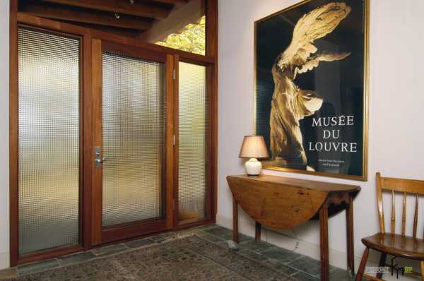 Разделение входных и межкомнатных дверей на секции со стеклянными вставками берет свое начало из стиля французского кантри. В настоящее время, это достаточно распространенный прием отхода от традиционной глухой двери.