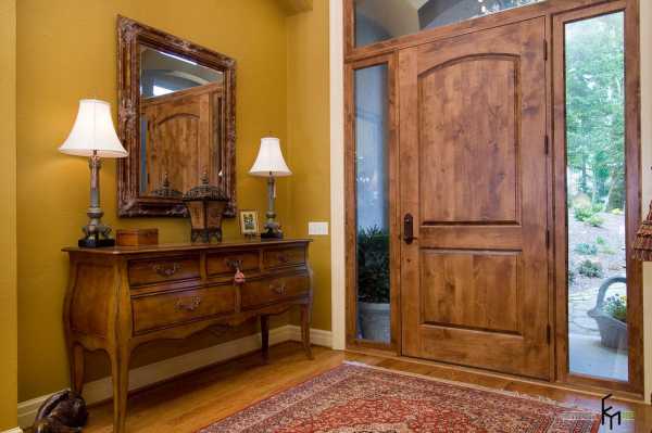 Входная дверь является почти визитной карточкой каждого дома. Она приоткрывает завесу вкусов хозяина помещения и указывает на его состоятельность. Главной особенностью двери можно считать её двойной дизайн. Вполне возможно наружную сторону оформить в одном стиле, а внутреннюю уже в другом. Таким образом, дверь будет гармонично смотреться и с облицовкой дома, и с интерьером жилого пространства.