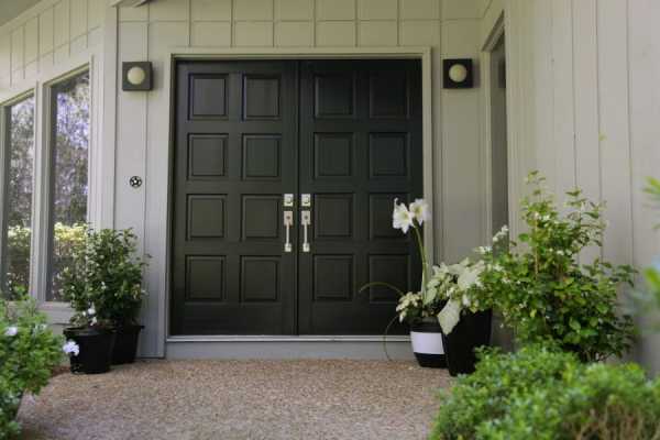 Двустворчатые двери с матовыми секциями не только украсят главный вход, но и позволят существенно расширить проход, в случае, если необходимо заносить крупногабаритную мебель, например.