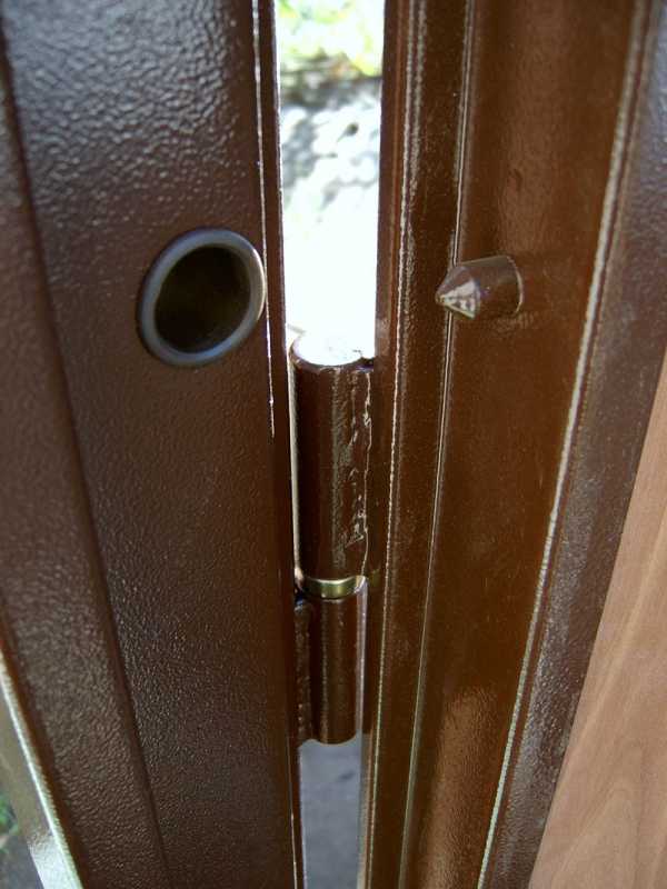 Кроме этого петли могут быть скрытыми, устанавливаться внутри дверной рамы. Если у двери имеются внешние петли, тогда следует обратить внимание на противосъемные ригели, они не позволят снять умышленно дверь.