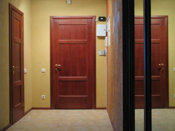 Изготовленные из МДФ. Это более бюджетный вариант деревянной двери. Из дерева обычно изготавливаются только откосы и иногда «коробка» самой двери. Внутреннее наполнение – сотовый картон или прессованные плиты. Дверям из такого материала можно придать любой вид и форму.