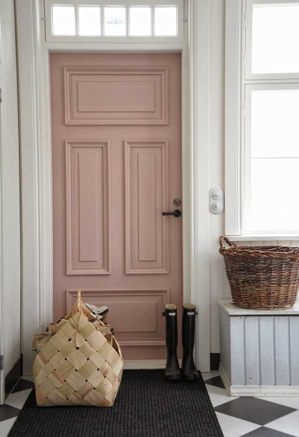 Для наружной части двери желательно использовать немаркий цвет, чтобы пыль, капли и прочее были не так заметны. Если же есть желание дополнительно ухаживать за входной дверью, то вполне можно решиться на сочные и дерзкие тона, или же напротив, подобрать дверь в пастельной романтичной палитре. Со стороны прихожей дверь может быть белая или вовсе полностью быть в стиле комнаты.