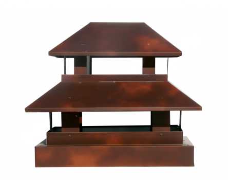 Разновидностей флюгарок существует несколько: одни напоминают домик с четырехскатной крышей, другие выполнены в виде зонта, третьи сделаны колпаком с полукруглым или плоским навершием. Бывают также флюгарки со щипцовой крышей, с открывающейся крышкой. Колпаки для дымоходных труб могут быть одноярусными и двухъярусными. У каждого из вариантов есть свои преимущества. Одноярусные колпаки подходят для домов с хорошей тягой. Флюгарки с двумя ярусами преимущественно устанавливают на дымоходы с меньшим сопротивлением тяги, усиливающейся при боковом ветре. Как правило, дымники в два яруса устанавливаются на трубах, выполняющих и вентиляционную функцию, и дымоотводную. Если дымоходная труба имеет круглую форму, то мы делаем флюгарки такой же формы. Одним словом, для наших специалистов нет невыполнимых задач. Мы стараемся удовлетворить пожелания каждого клиента наилучшим образом.