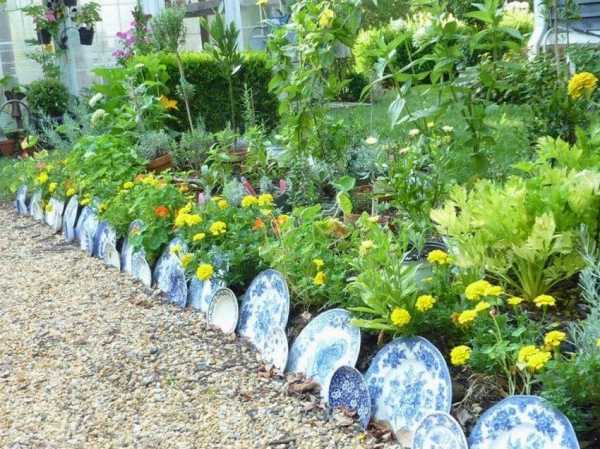 Даже из тарелок можно сделать ограждения для грядок.