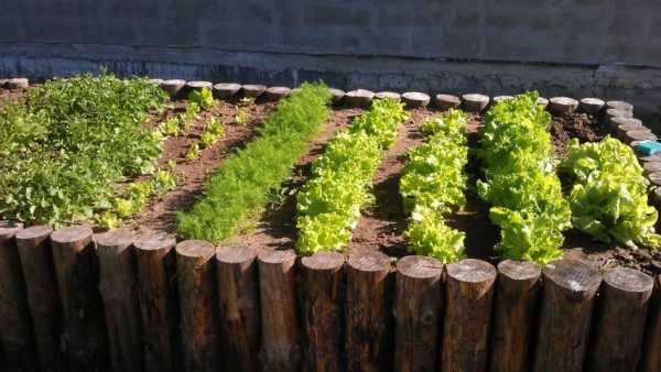 Грядки для зелени, оформленные бревнышками.