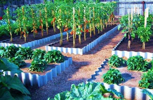 Грядки, оформленные при помощи шифера.